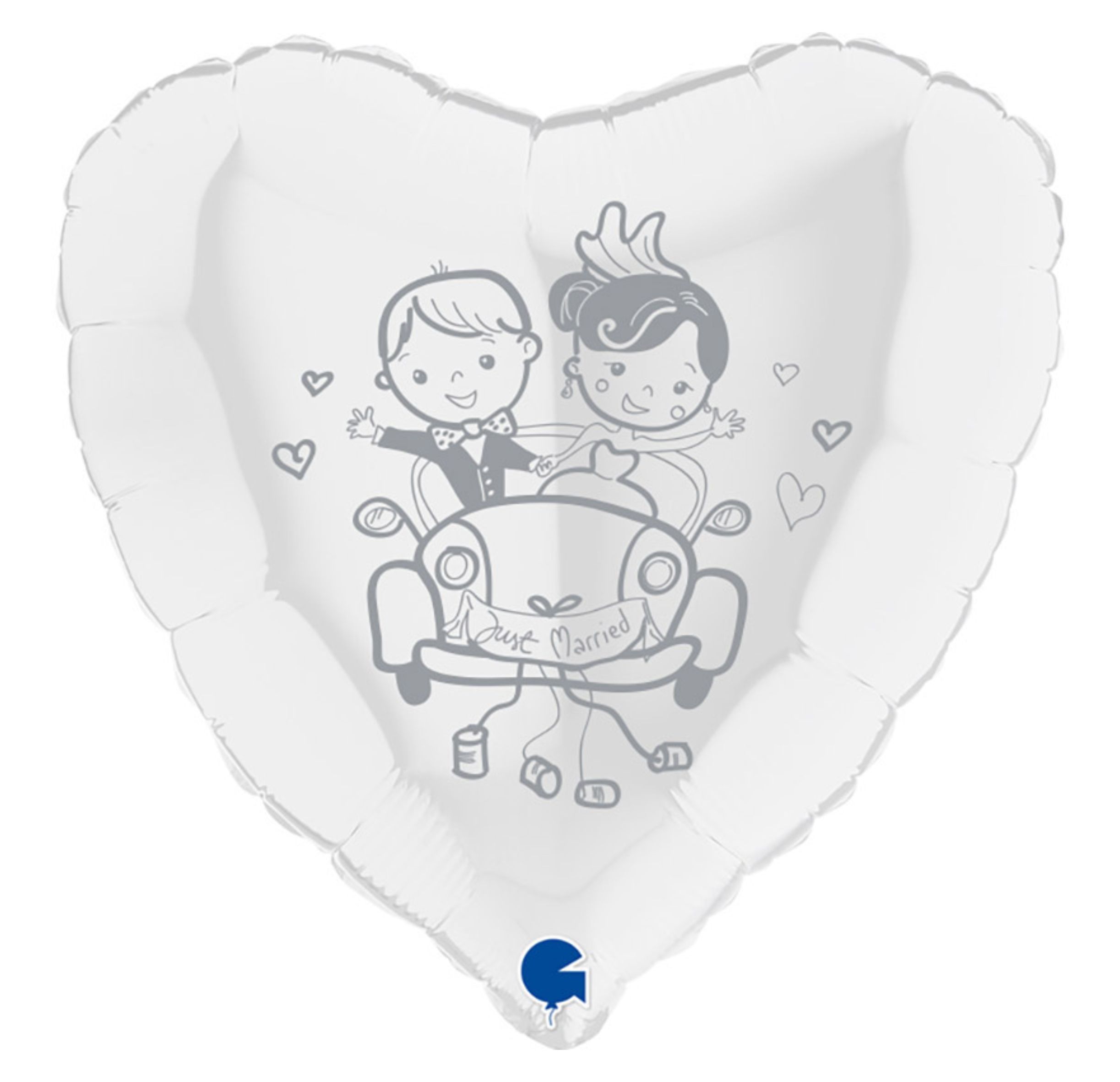 Oferowane balony foliowe na ślub mają kształt serca – świadczący o łączącej was miłości. Na białym tle można podziwiać srebrny nadruk uśmiechniętej Pary Młodej wyruszającej we wspaniała przygodę, jaką jest wspólne życie. Balon ma duży rozmiar – aż 45 cm.